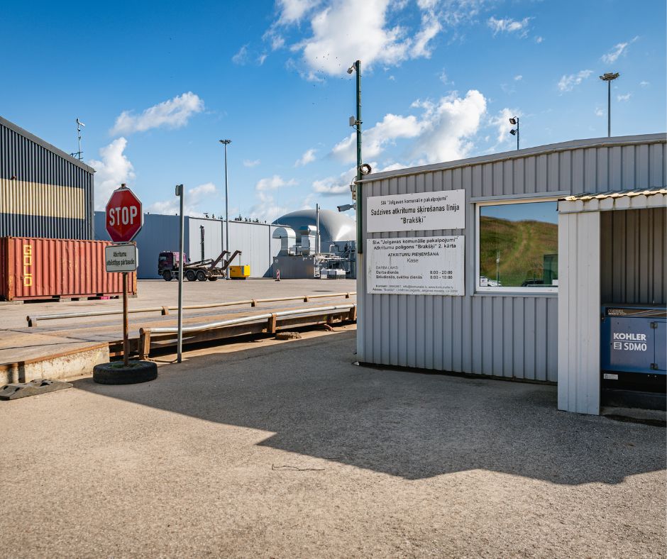 Dodies uz attēlā redzamo ēku (blakus svariem), kur Tevi sagaidīs mūsu operators. Pastāsti, kādus atkritumus esi atvedis, un saņem norādes, kur tie būs jāizkrauj.